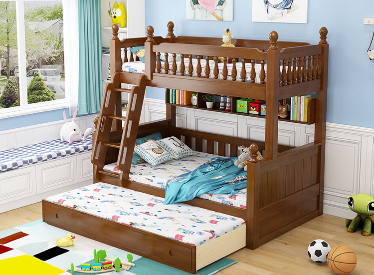 【產品名稱】橡膠木羅馬柱爬梯子母床